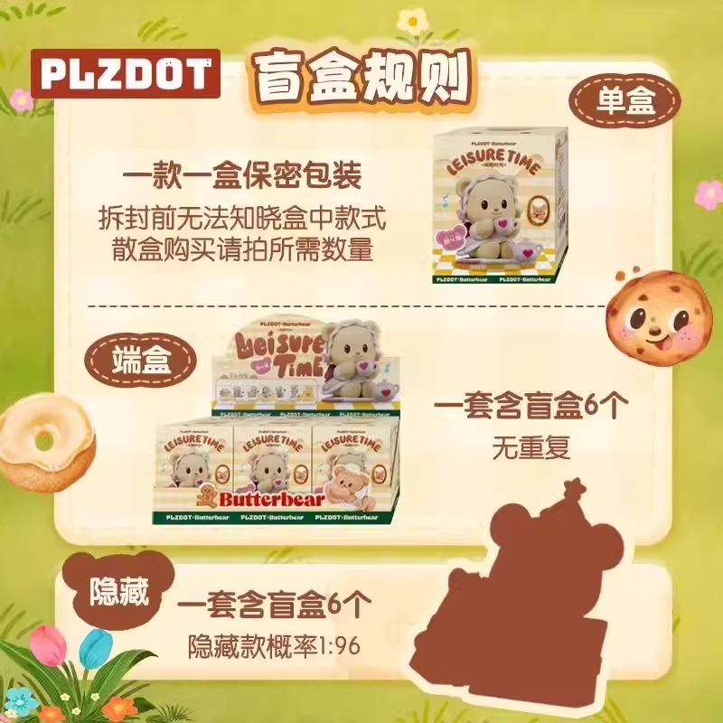 MANBO TOYS Products Butter Bear Blind Box Leisure Time Series Trendy Doll Plush Handmade Doll Female Birthday Gift Ornament