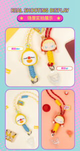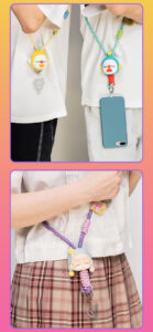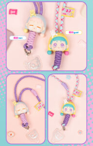 UINI mobile phone hanging rope blind box figurine, can be crossed diagonally or hung around the neck, the head is made of silicone material, and the rope can be adjusted in length, also in the form of a blind box