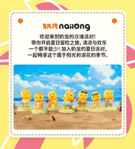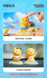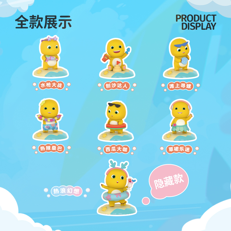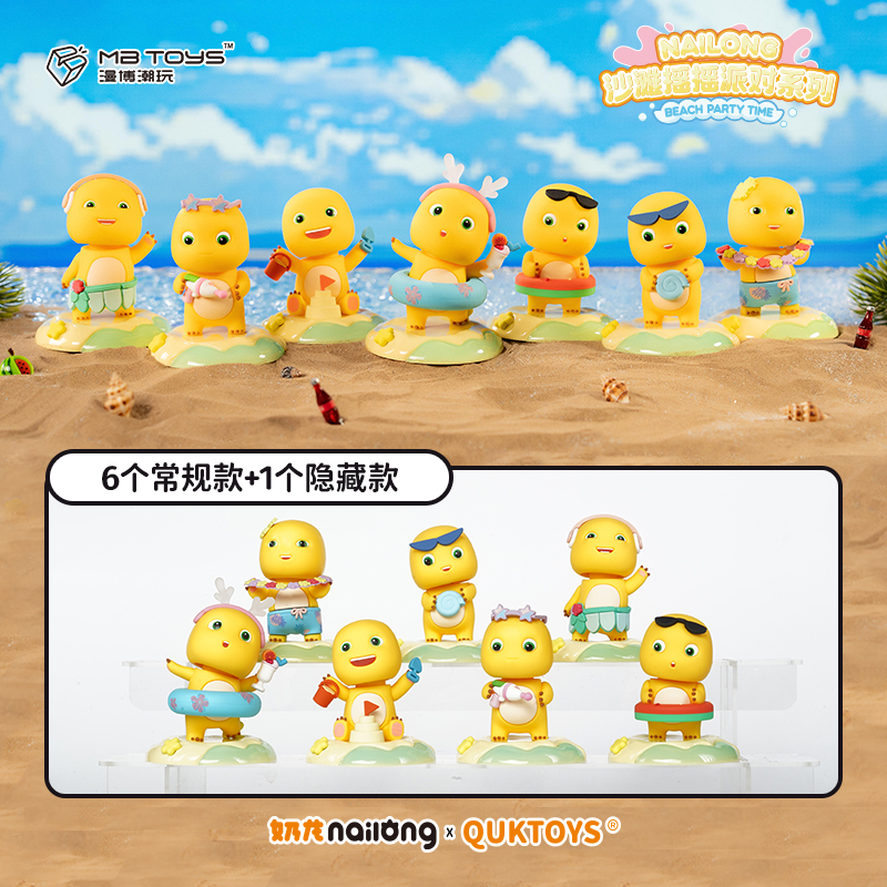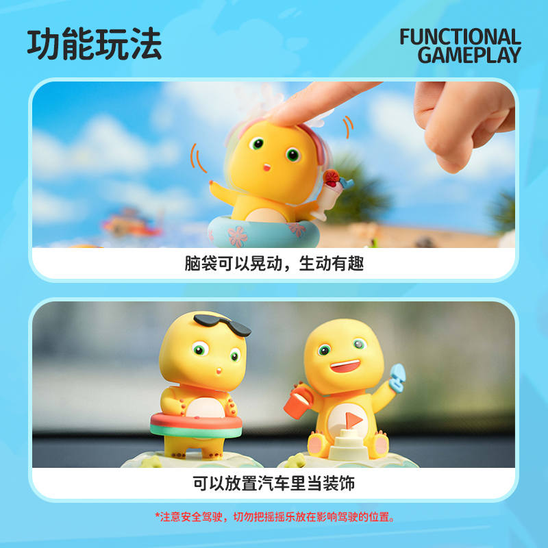 欢迎来到奶龙的沙滩派对,带你开启一段清凉快乐的夏日冒险之旅。加入奶龙的夏日派对,一起享受阳光和海浪吧!牛奶龙摇摇乐盲盒可以作为汽车装饰品,把奶龙放在车里,它就会摇晃。