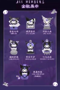 I believe many people really like the character of Kuromi, and this time it satisfies everyone. This regular model has 6 Kuromi dolls, and the height of the dolls is about 9cm-12cm, which is very suitable as ornaments