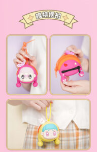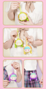 这款多功能女孩耳机包采用硅胶材质,可用作背包挂件、耳机包或零钱包。它非常小巧便携,耳机包零钱包里还可以装零钱或口红。